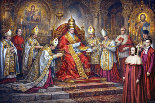 the Roman-Ruthenian Pope typically by a mazziere (mace bearer).